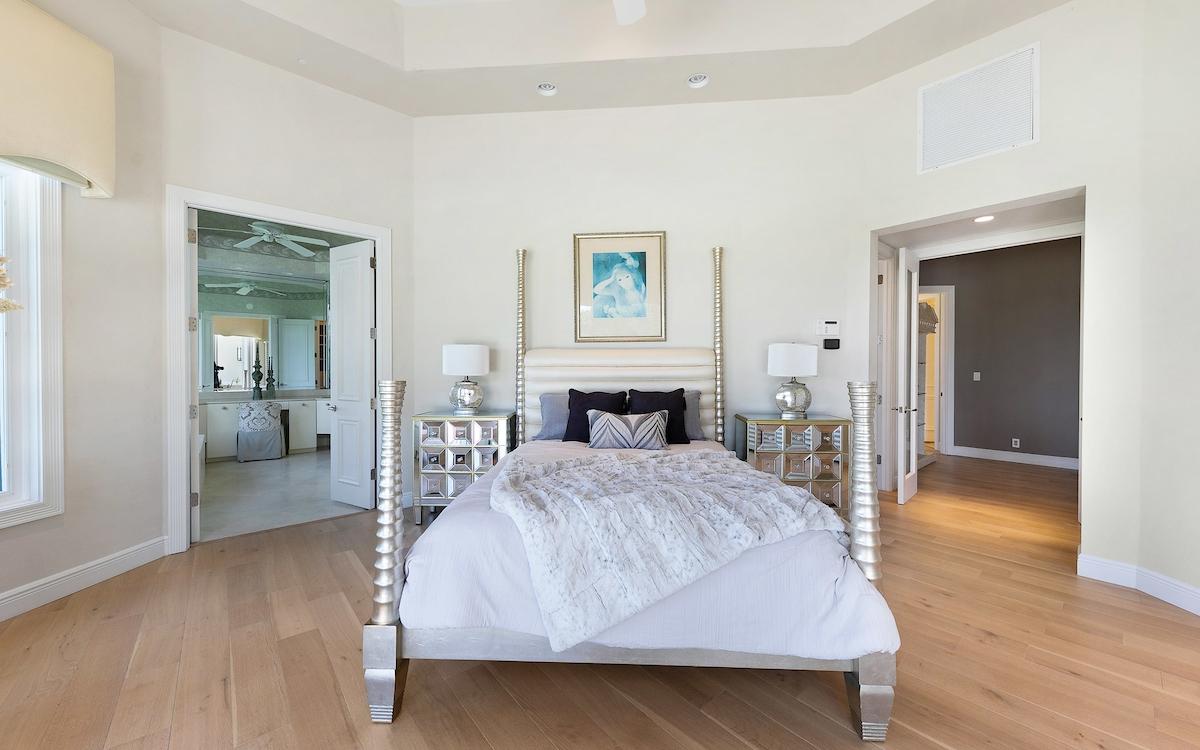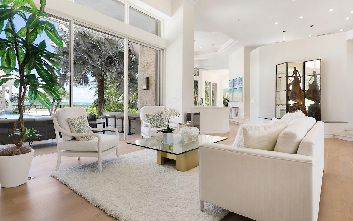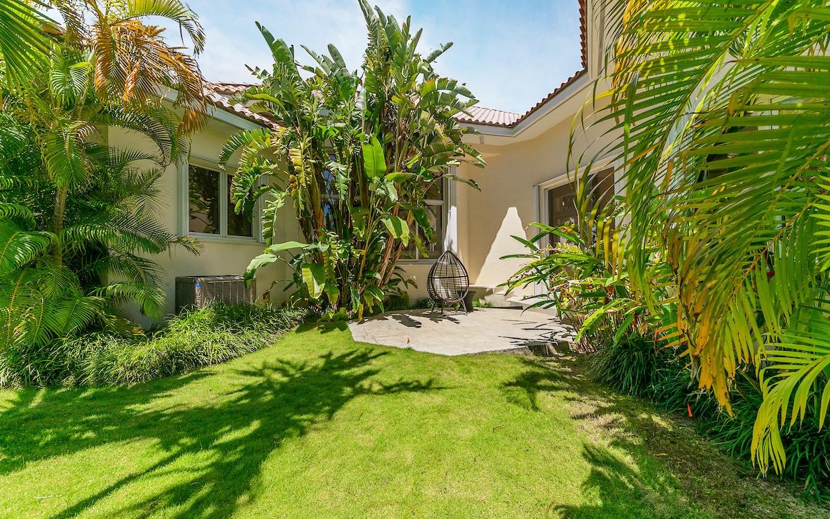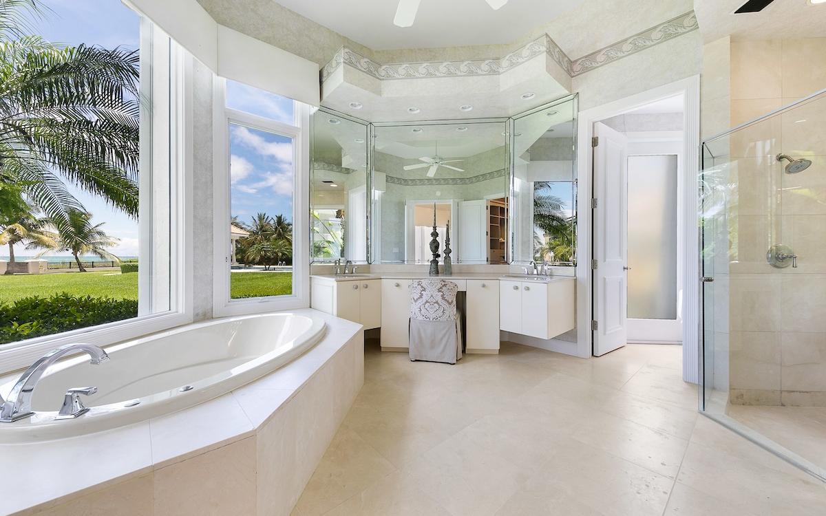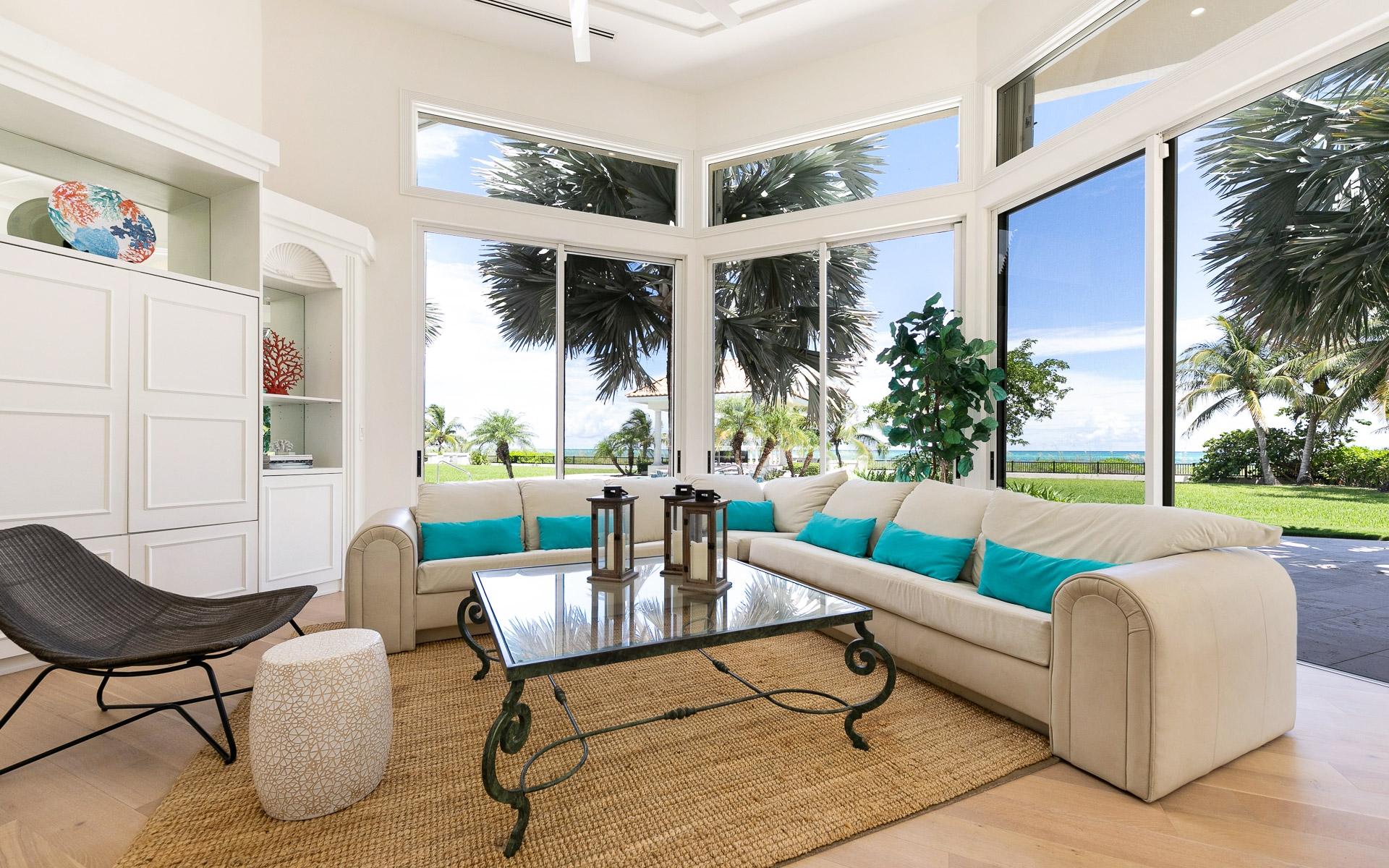 Villa Alegria, the first beachfront home, impresses with its grand foyer that flows into a magnificent great room with soaring ceilings, opening to the pool deck and ocean beyond. Adjacent to the central space are a dining room, family room, and a striking library with expansive windows that invite natural light. The villa also features two luxurious master suites with walk-in closets, spa-like bathrooms, and direct pool access.
