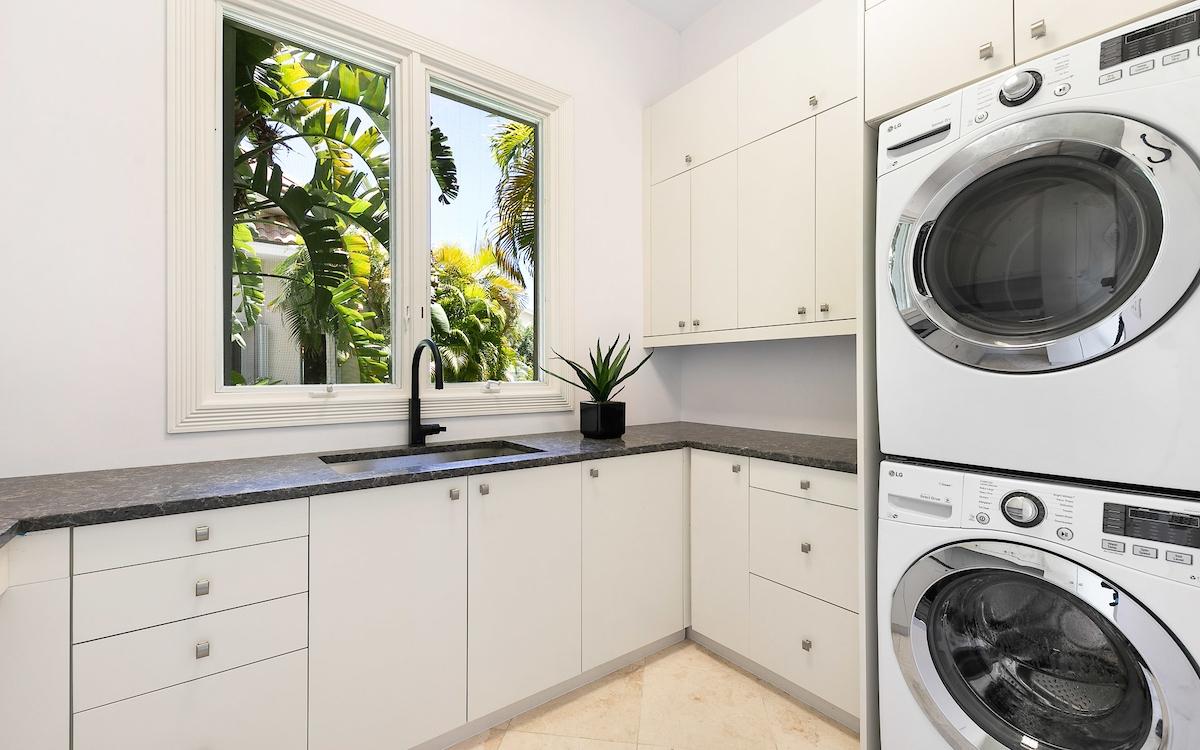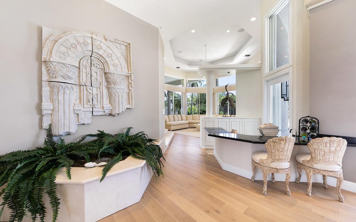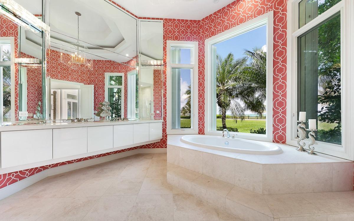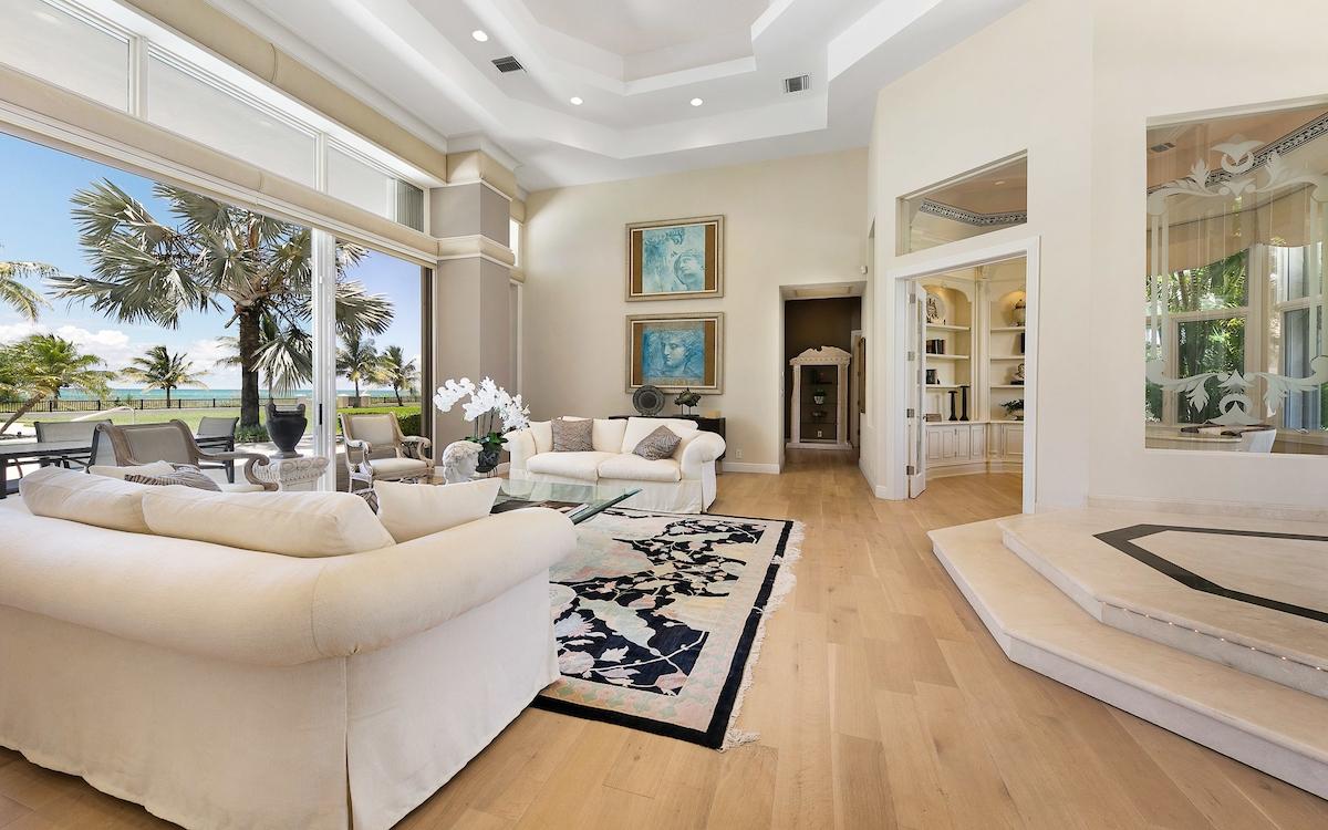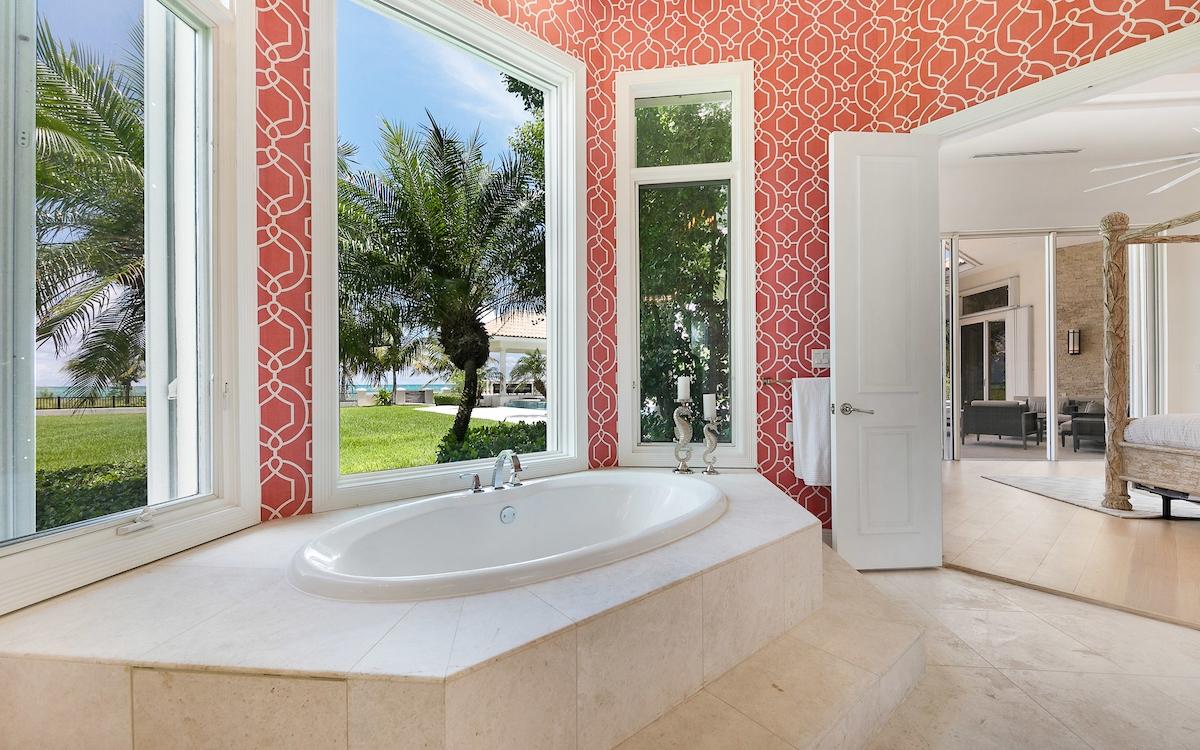 Villa Alegria, the first beachfront home, impresses with its grand foyer that flows into a magnificent great room with soaring ceilings, opening to the pool deck and ocean beyond. Adjacent to the central space are a dining room, family room, and a striking library with expansive windows that invite natural light. The villa also features two luxurious master suites with walk-in closets, spa-like bathrooms, and direct pool access.