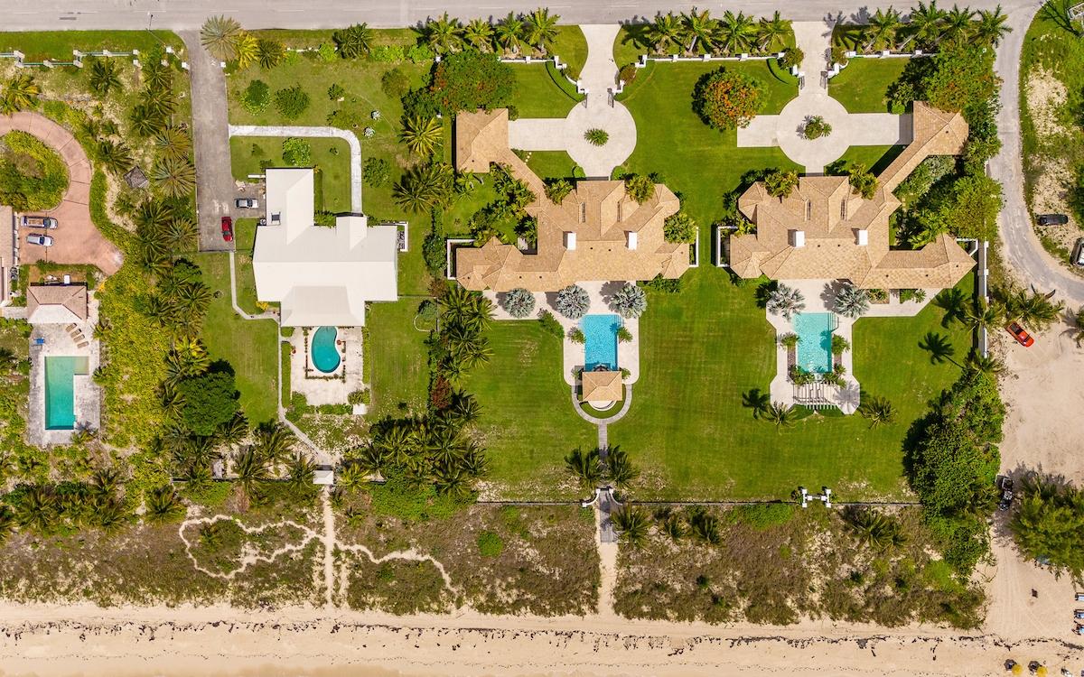 Two of the homes are set on 300 feet of pristine beachfront, offering breathtaking views of crystal-clear waters, each with its own private pool and gazebo. The third home, situated on 100 feet of canal frontage, includes a full-length dock equipped with posts for secure docking, making this estate perfect for boating enthusiasts.