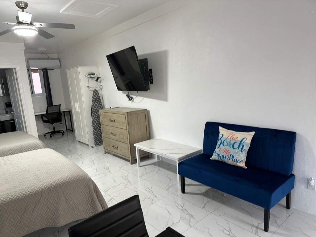 This property offers a unique investment opportunity with 14 fully furnished, one-bedroom beachfront apartments in the Bahamas. Each unit is designed for comfort and convenience, featuring a private kitchen, laundry facilities, a 43-inch smart TV, WiFi, memory foam mattress, and air conditioning. The shared balcony overlooks the pristine beach, ideal for relaxation.