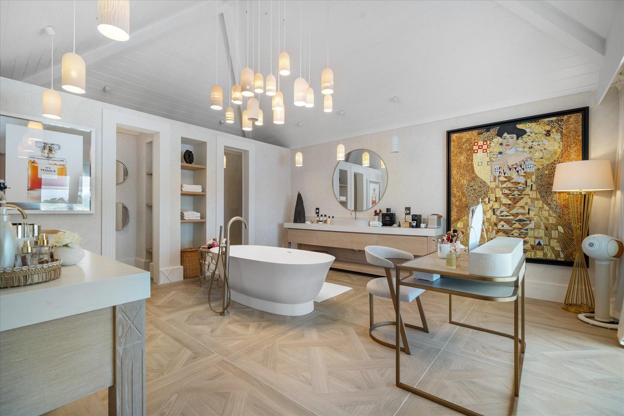 Recently renovated with exquisite European materials, the estate seamlessly blends modern elegance with timeless island charm. The property features a sophisticated main house, two private cottages, and meticulously crafted outdoor spaces, creating a perfect retreat for relaxation and entertainment.