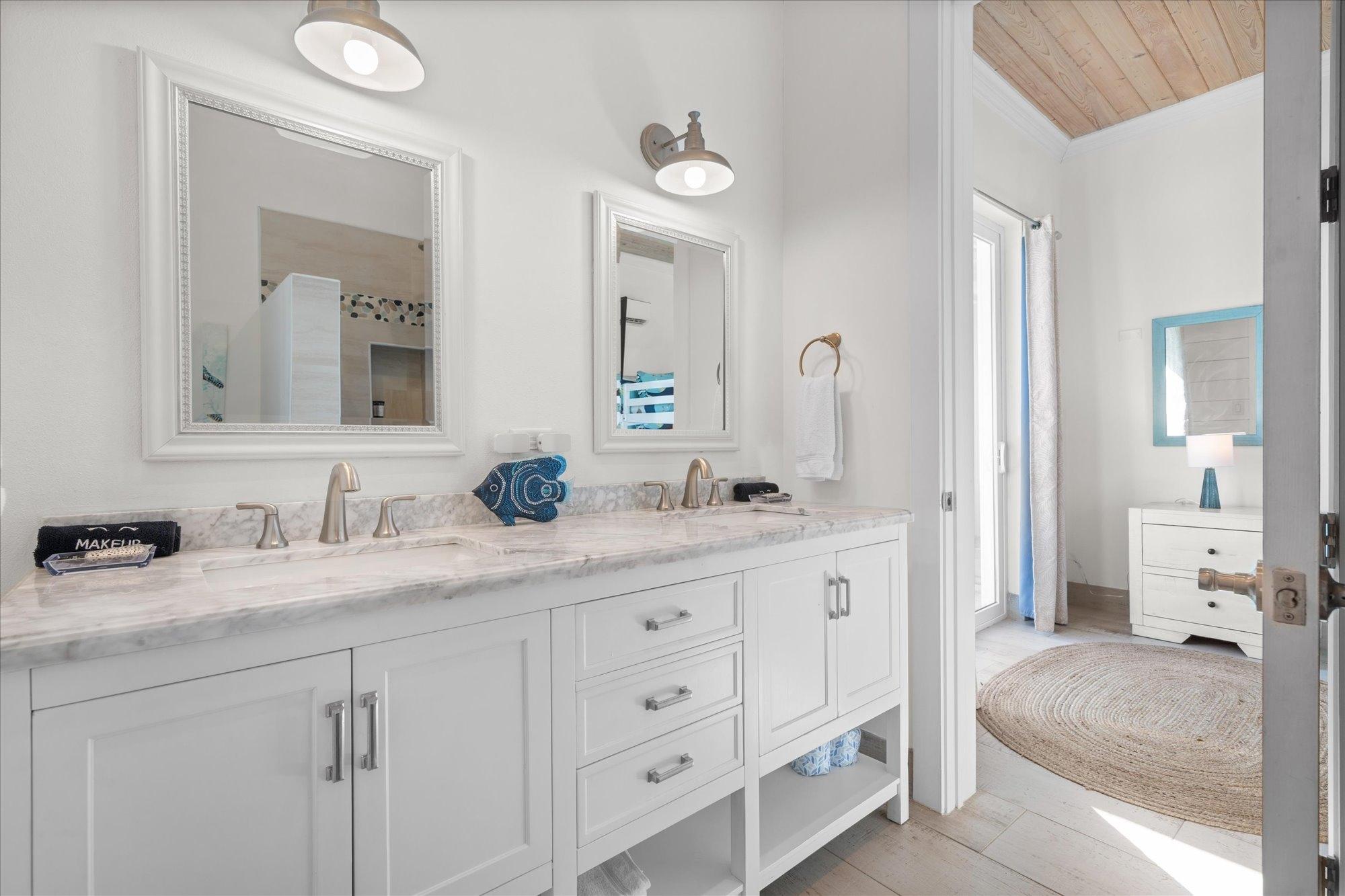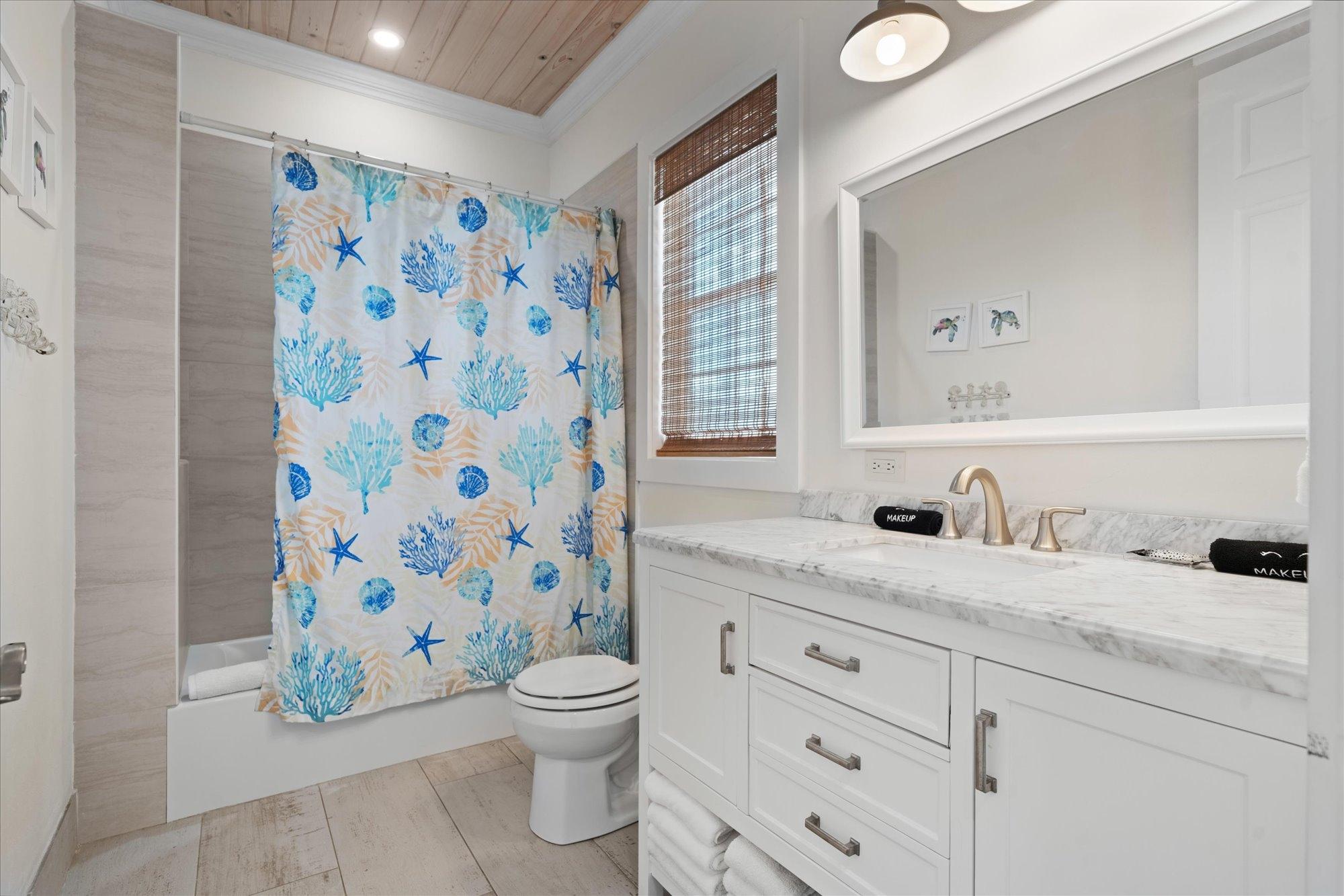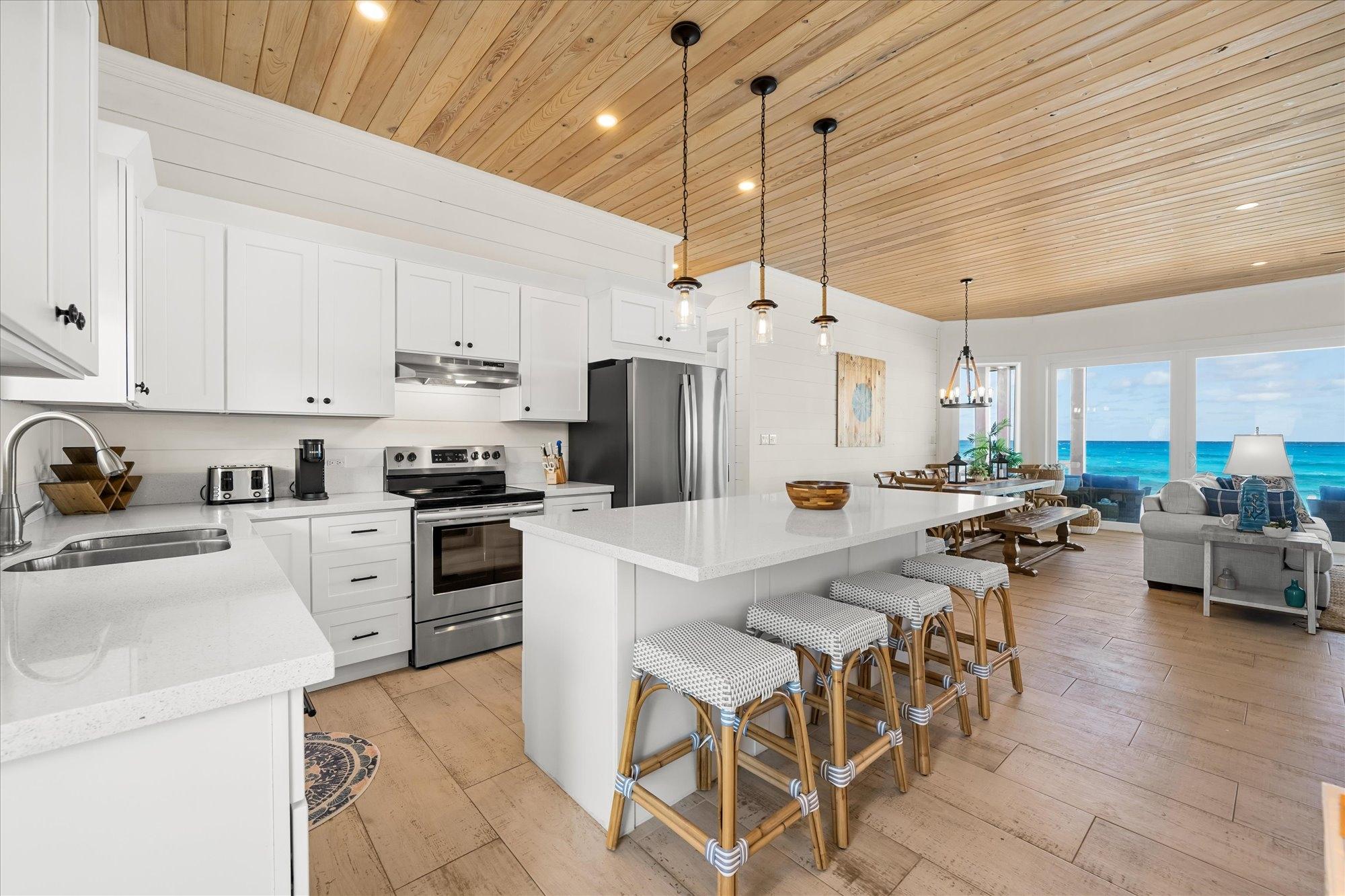 Adjacent to Treasure Cove, "Cerulean Sands" is a 1,750-square-foot, single-story home with four bedrooms and three-and-a-half bathrooms. It also features its own pool and hot tub along an expansive stretch of powdery white sand.