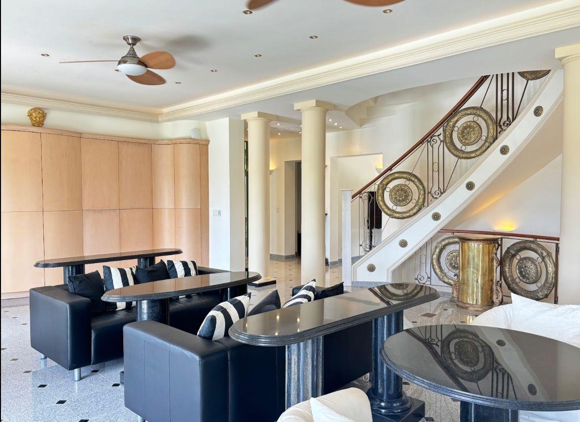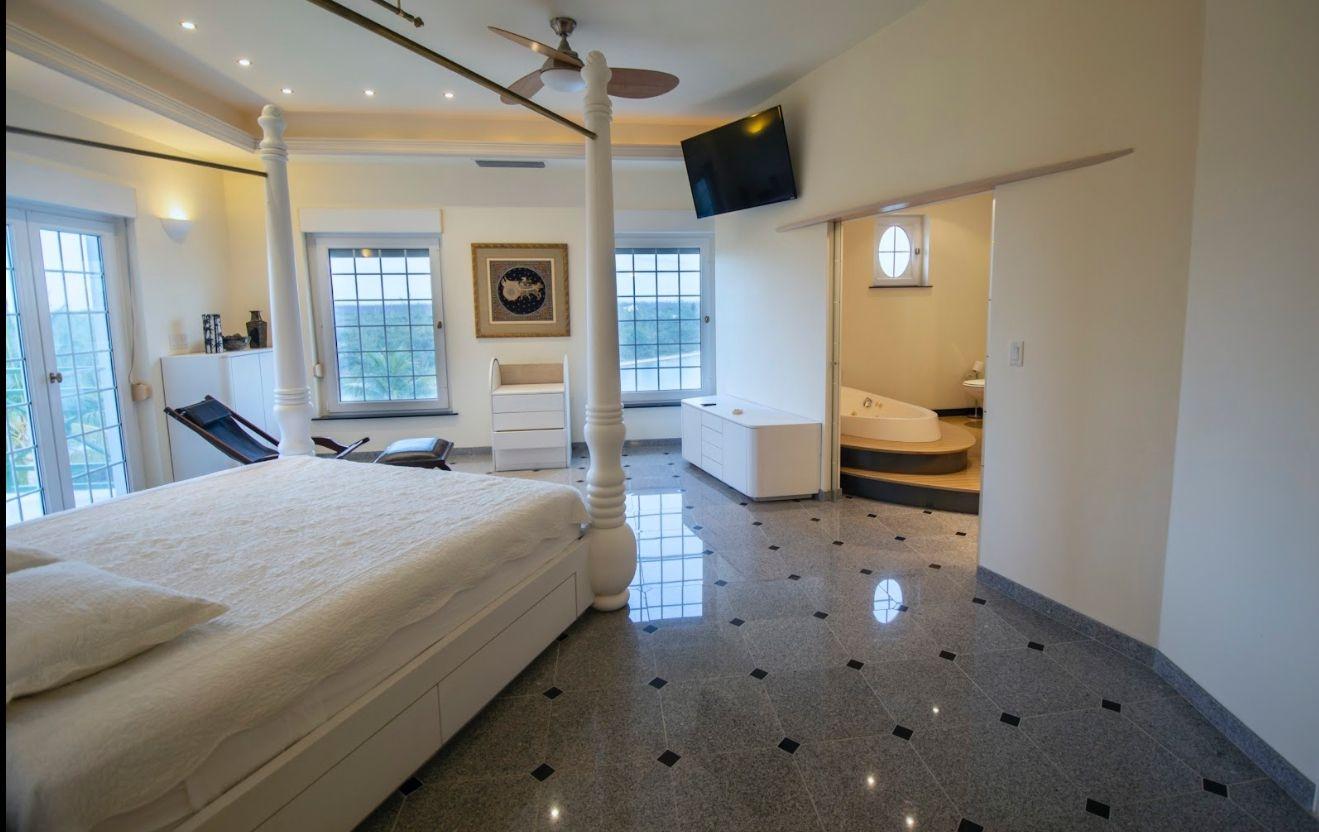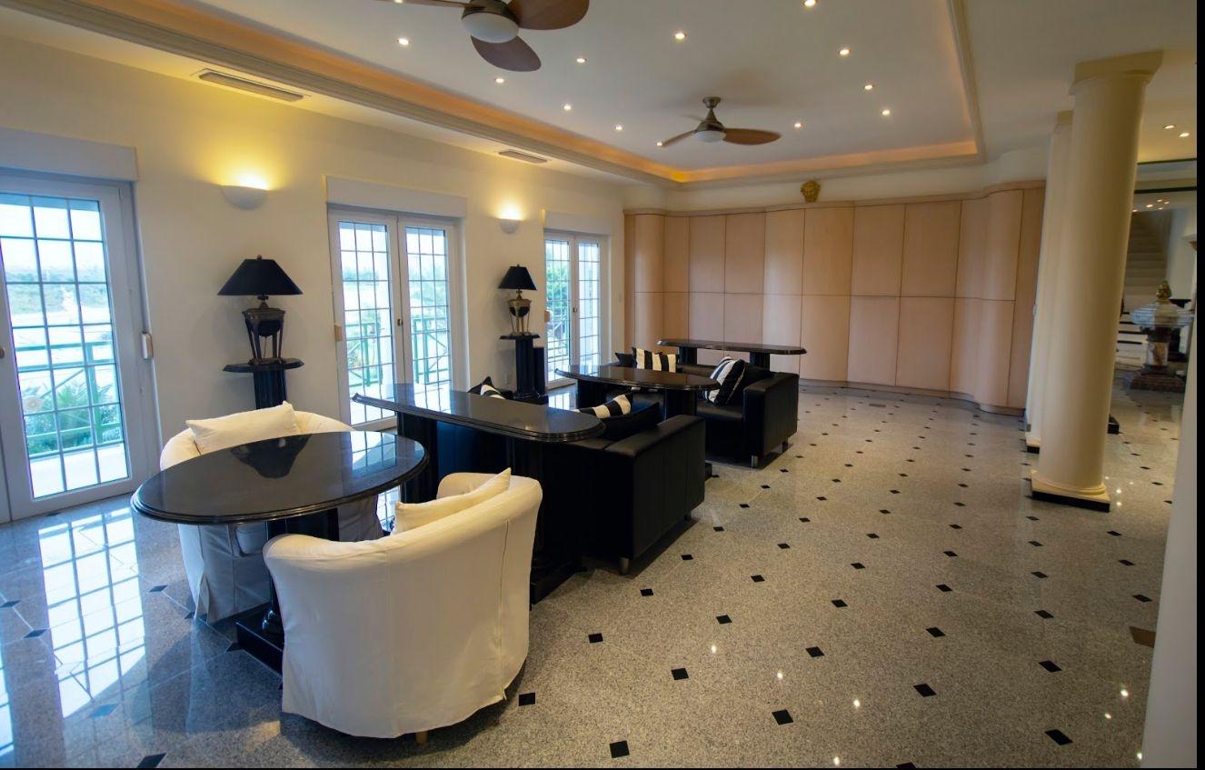 Built with state-of-the-art hurricane protection, the home features impact-resistant thermo-pane windows with hidden rolling shutters for added security and sun protection. Inside, enjoy 15,900 sq. ft. of polished grey granite flooring, 10-ft high ceilings, and a tile roof with a watchtower offering breathtaking views.