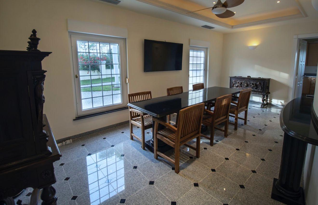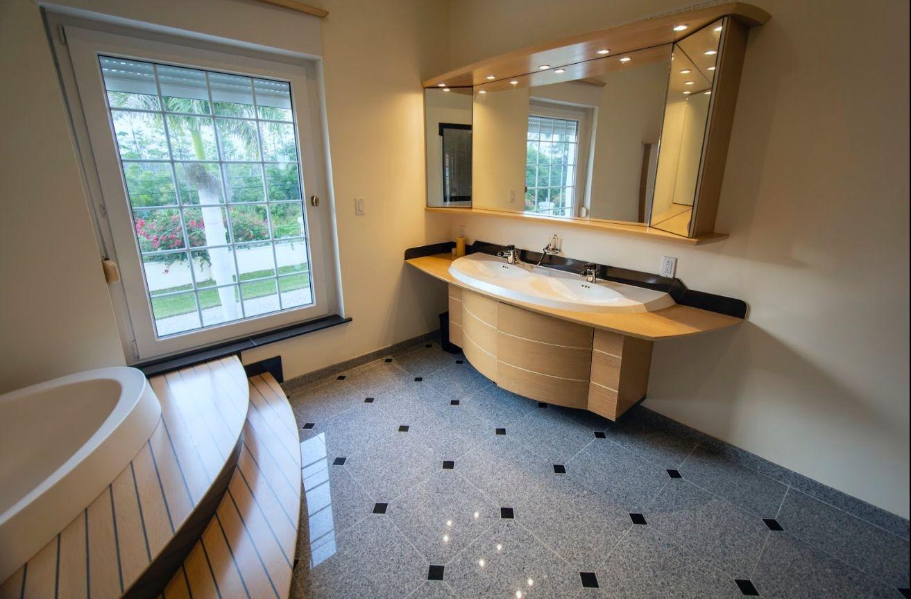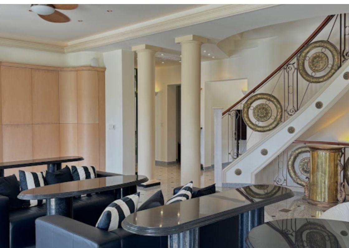 Built with state-of-the-art hurricane protection, the home features impact-resistant thermo-pane windows with hidden rolling shutters for added security and sun protection. Inside, enjoy 15,900 sq. ft. of polished grey granite flooring, 10-ft high ceilings, and a tile roof with a watchtower offering breathtaking views.