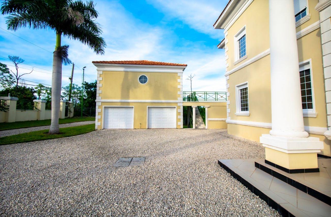 The estate includes a four-story main house, two detached guesthouses, and oversized two-car garages, all enclosed by wire fencing on cement pillars for privacy. The courtyard and magnificent swimming pool add to the luxurious ambiance.