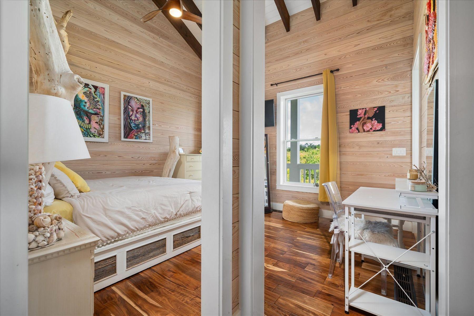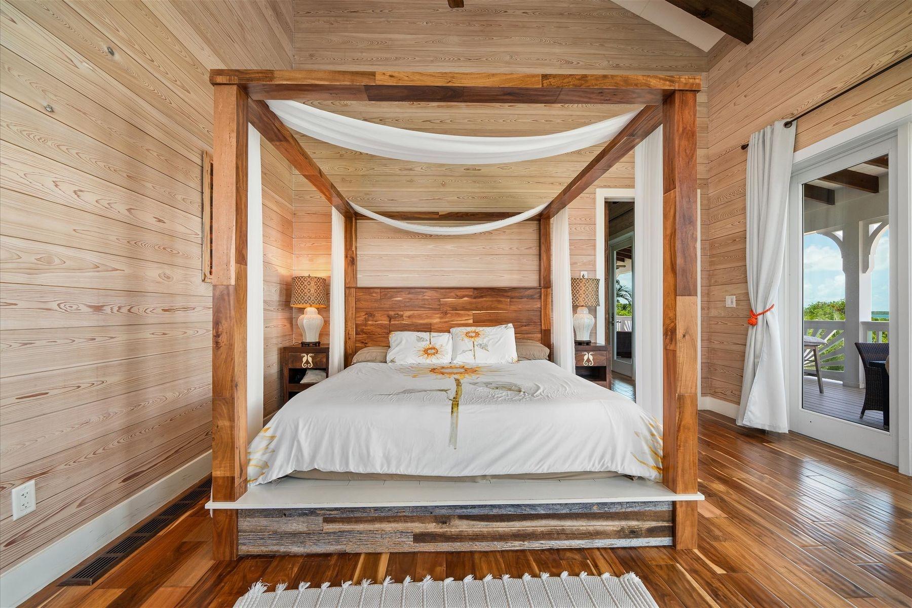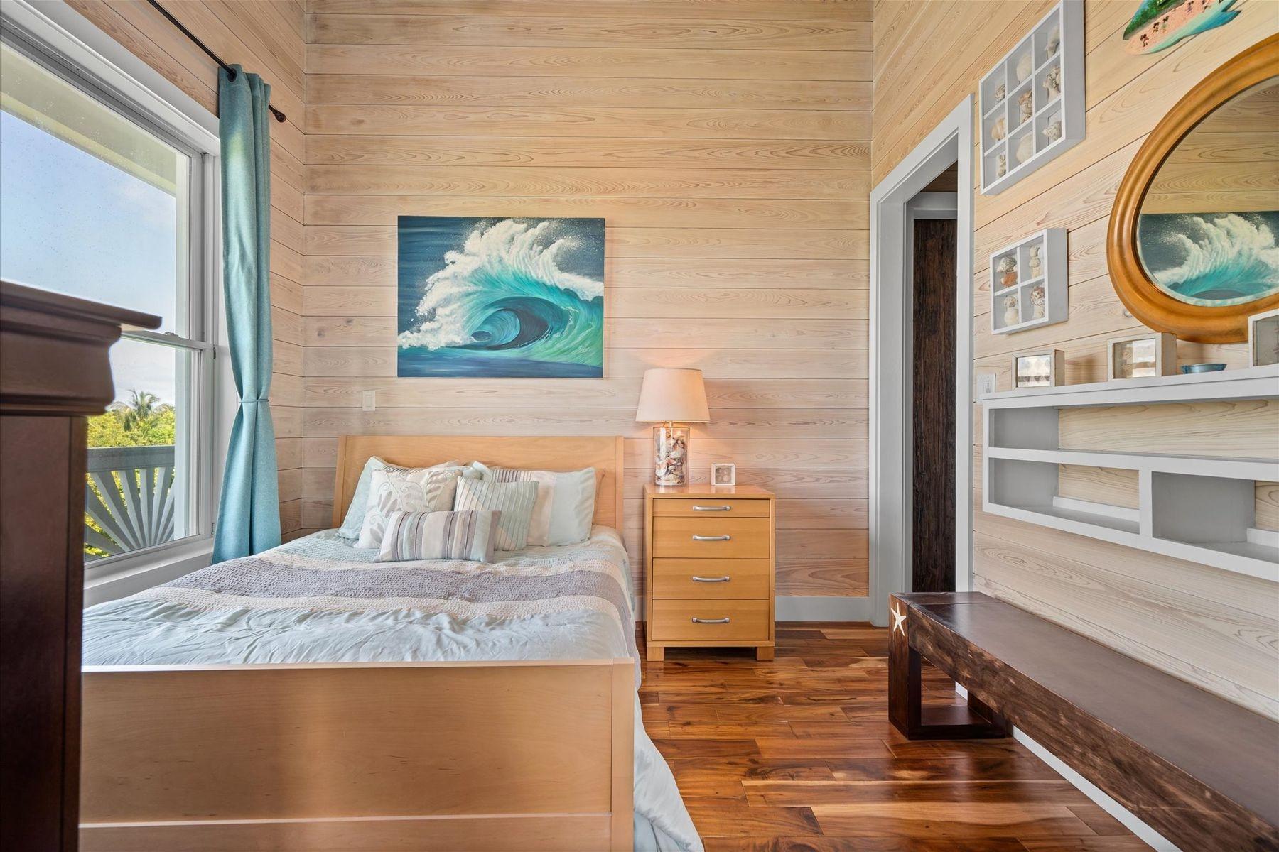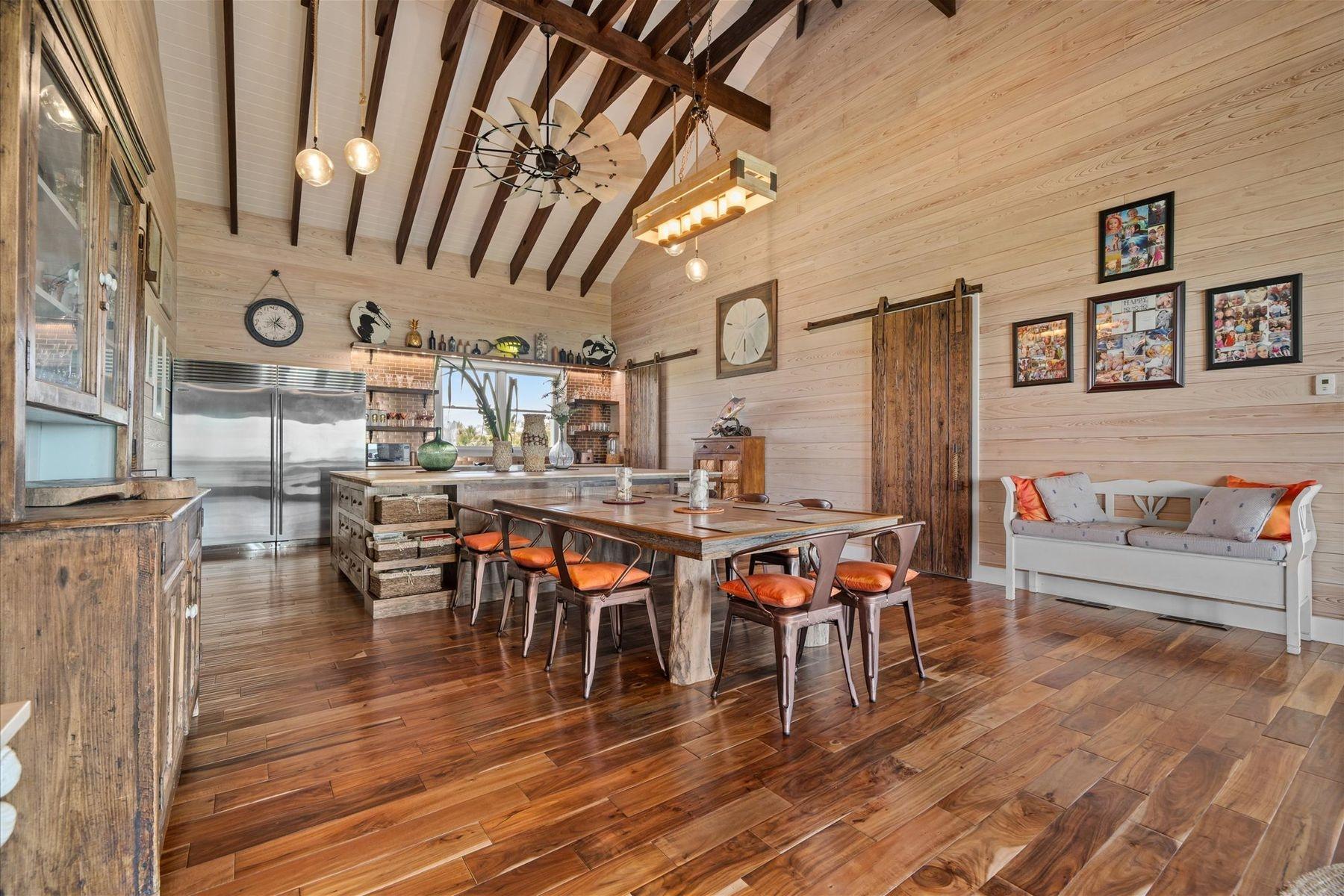 The interiors boast cypress ceilings, coral stone countertops, and acacia wood flooring, creating a warm and refined atmosphere. Outdoors, enjoy a 1,500 sq. ft. covered deck, landscaped garden, large pool, fire pit, and grill and bar area—perfect for entertaining or relaxing in paradise.