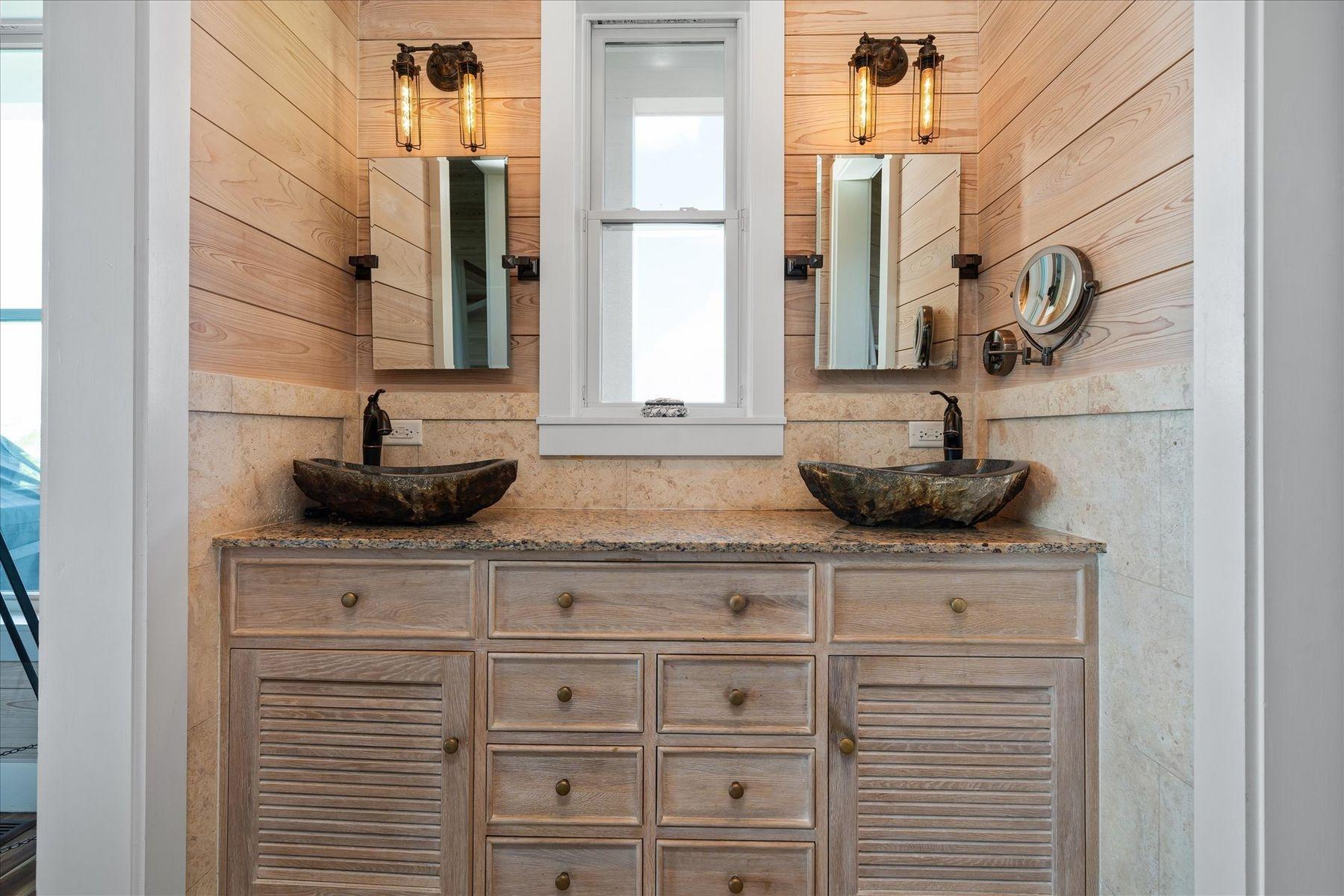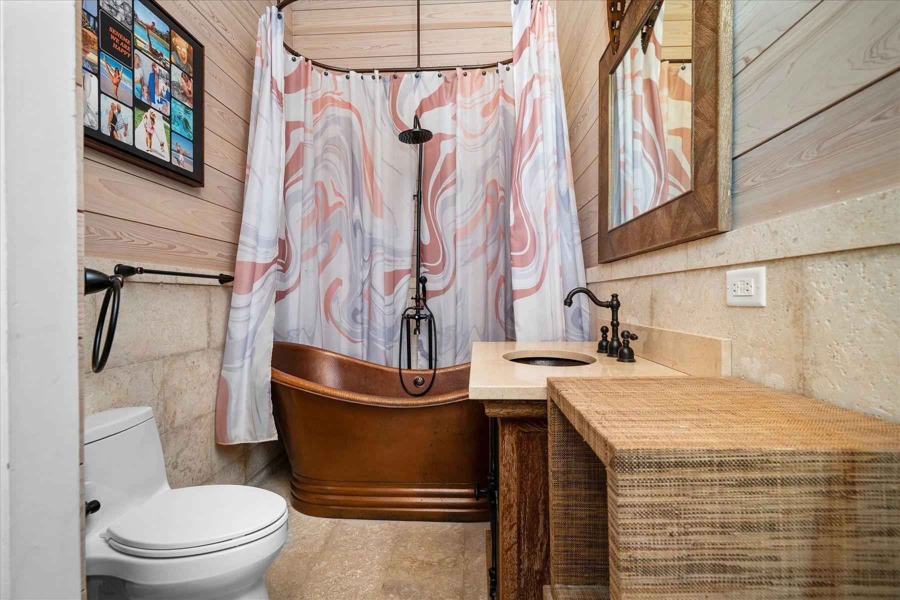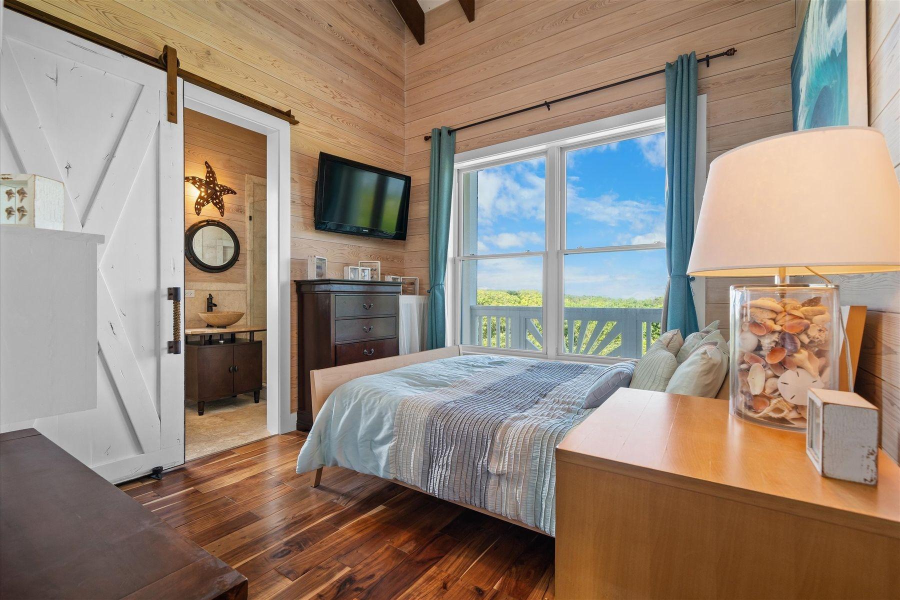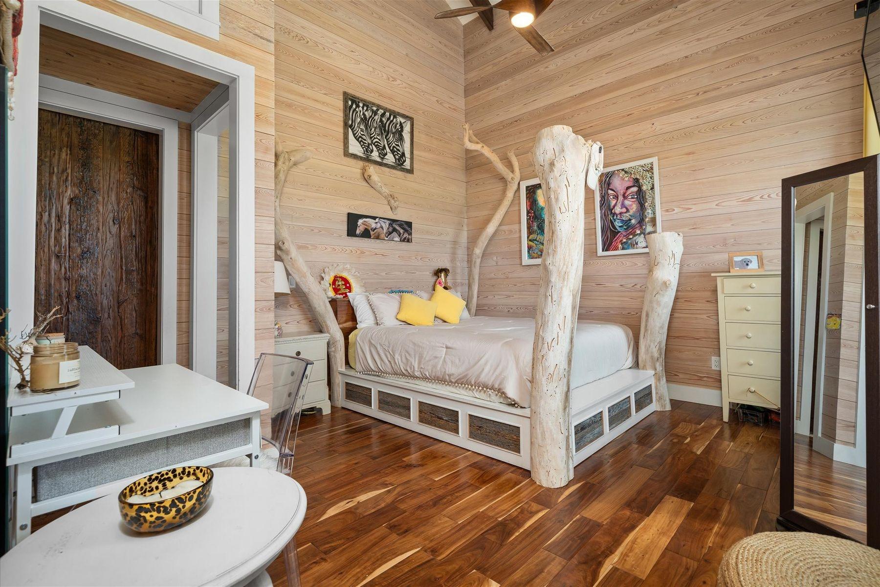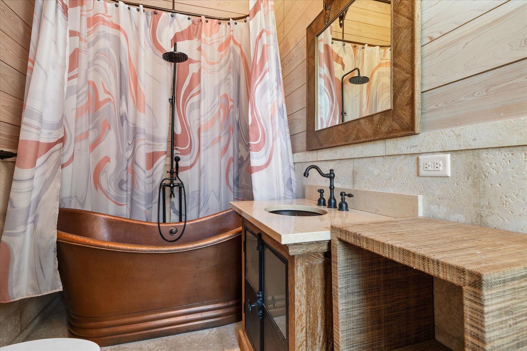The interiors boast cypress ceilings, coral stone countertops, and acacia wood flooring, creating a warm and refined atmosphere. Outdoors, enjoy a 1,500 sq. ft. covered deck, landscaped garden, large pool, fire pit, and grill and bar area—perfect for entertaining or relaxing in paradise.