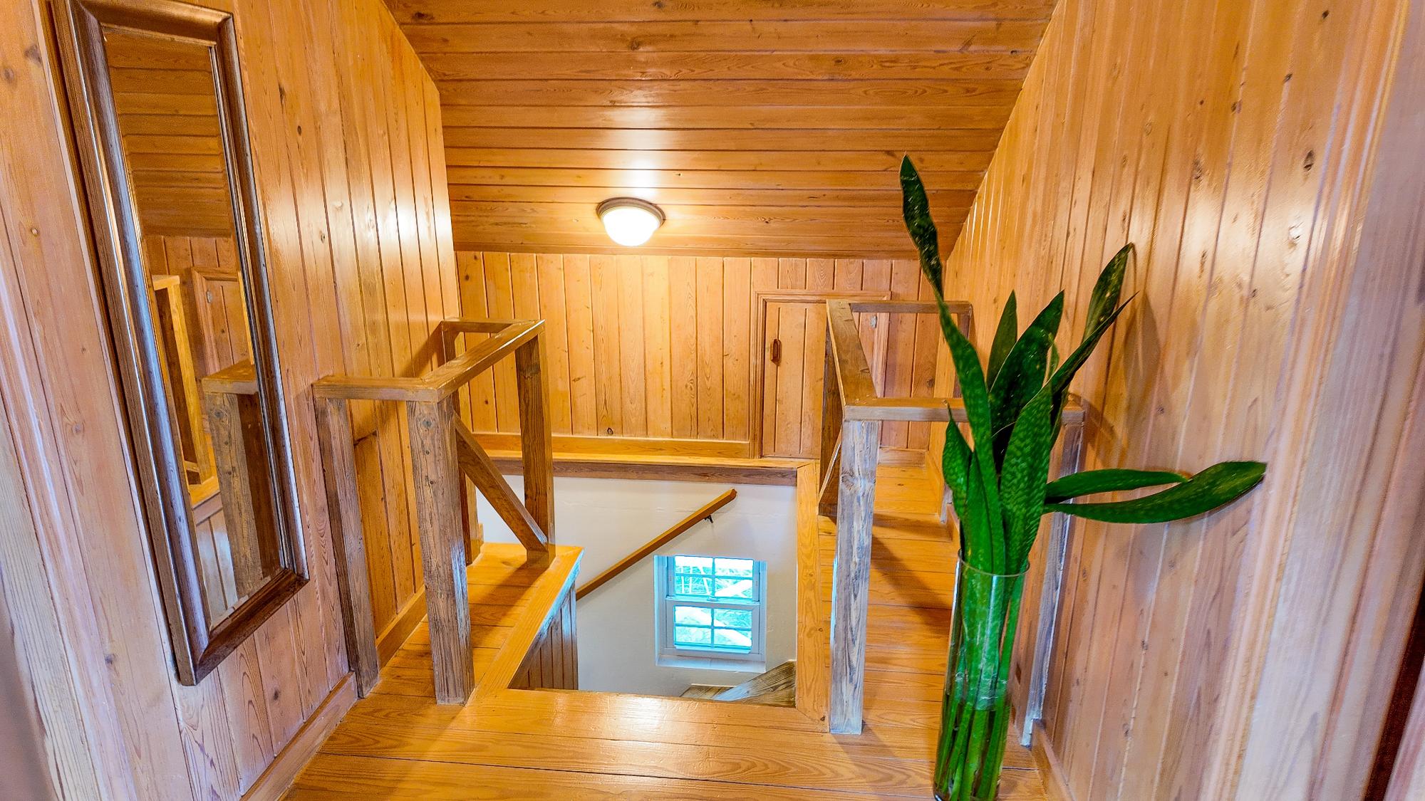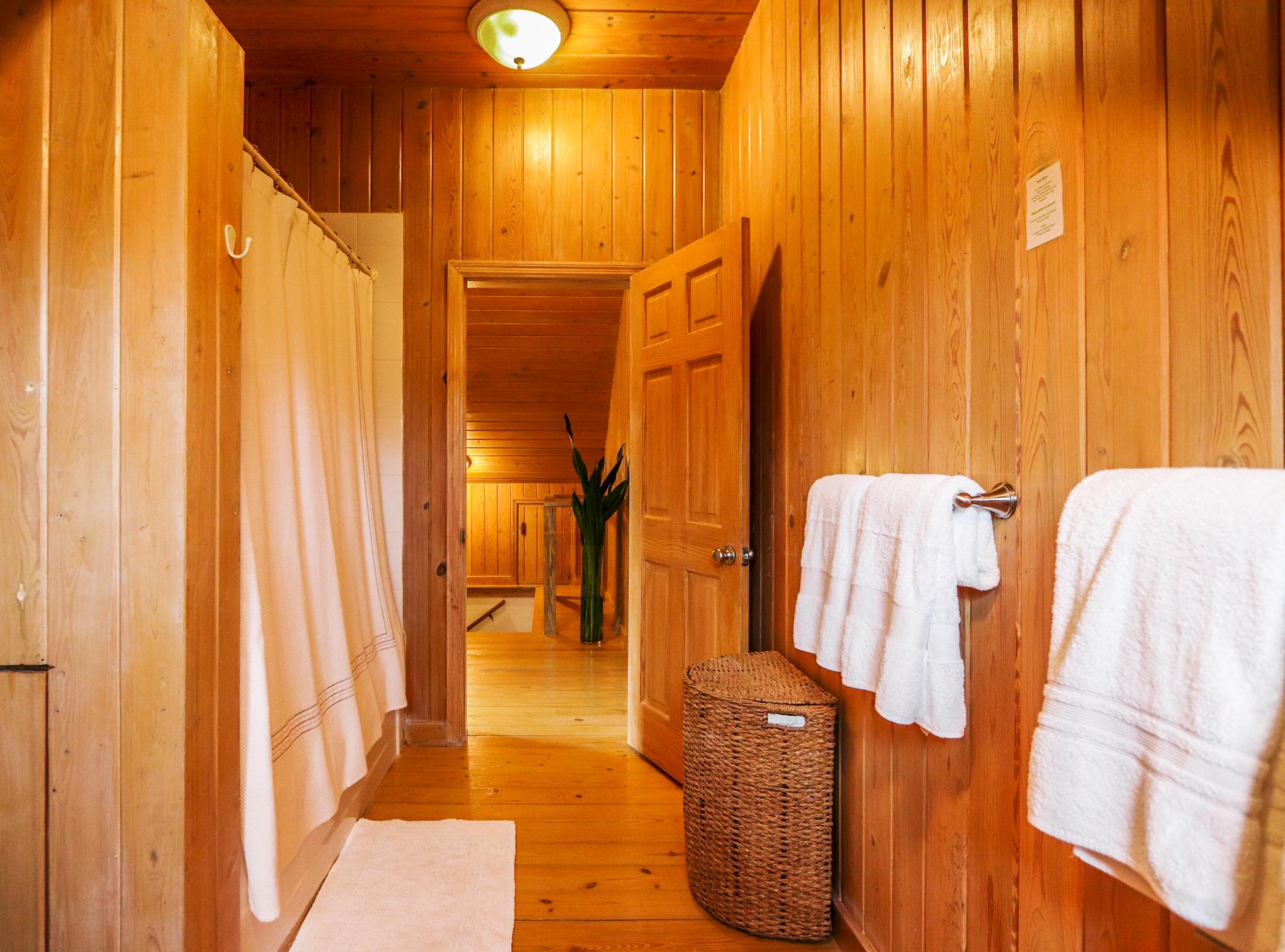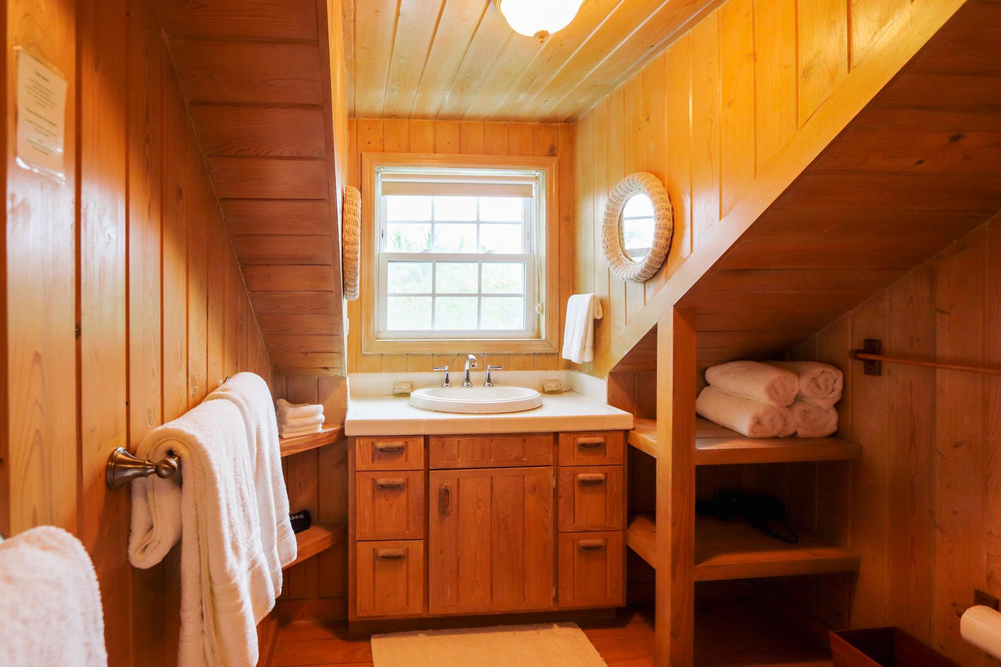 The main floor, with its airy, whitewashed ambiance, welcomes you into a warm, tropical escape, while the upper level, featuring beautiful cypress finishes, provides a cozy, treetop vibe.