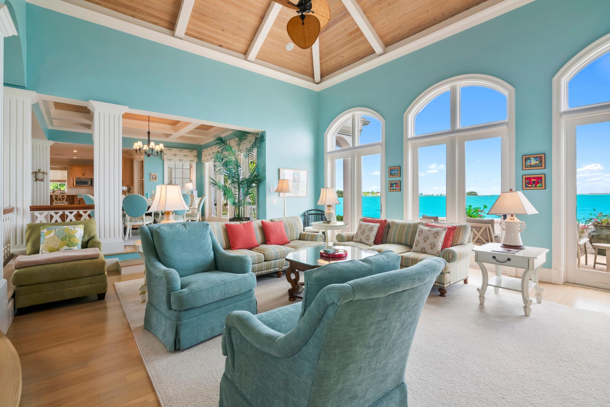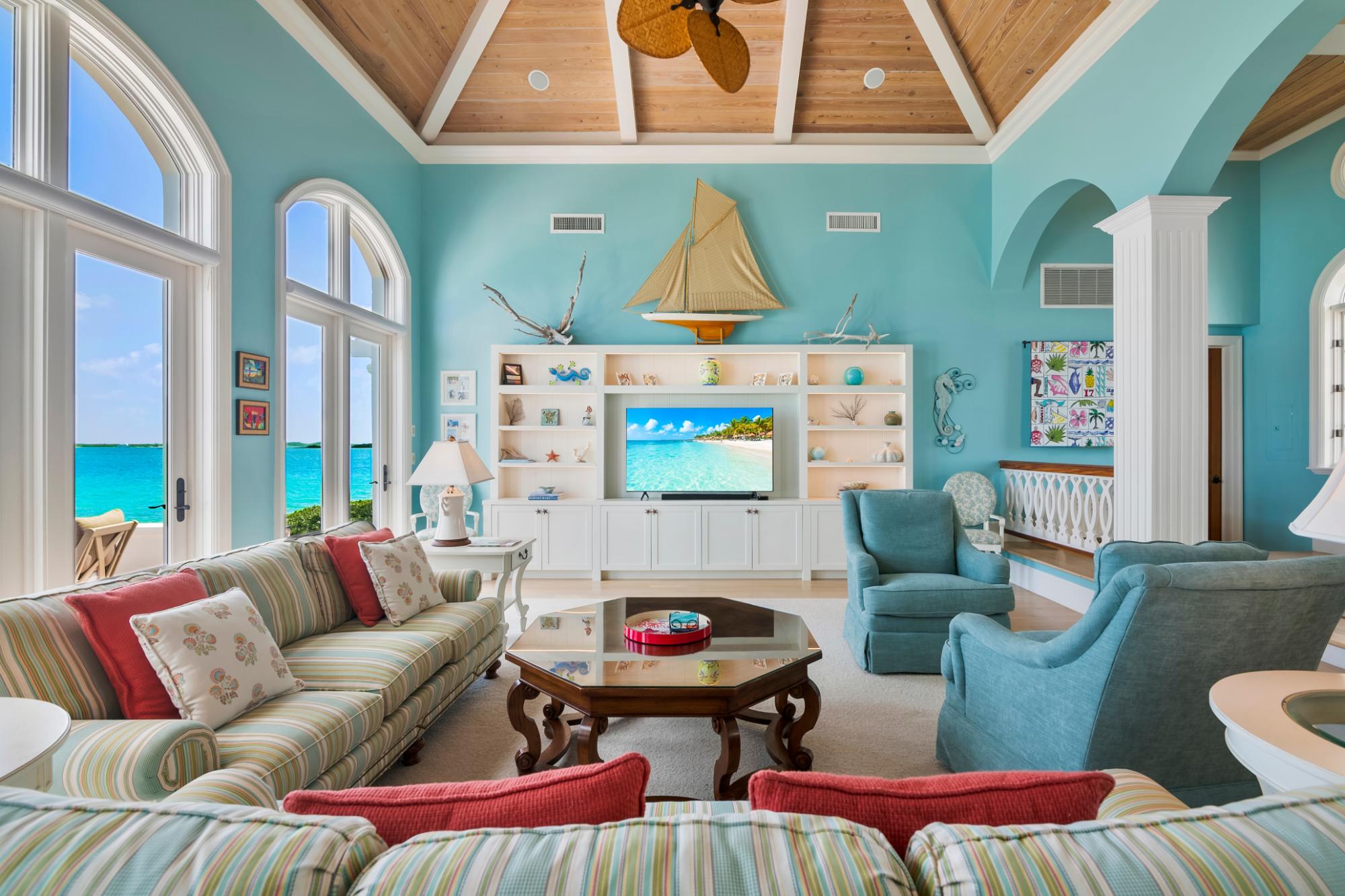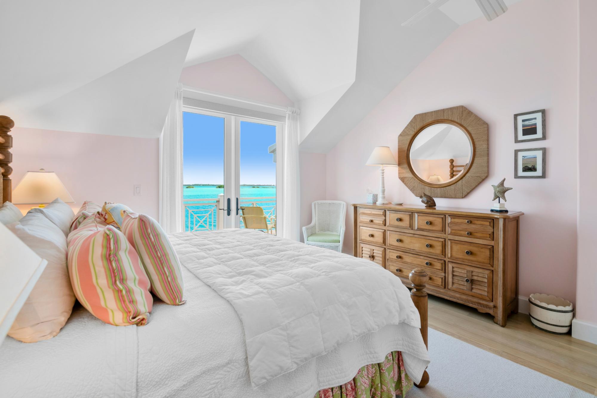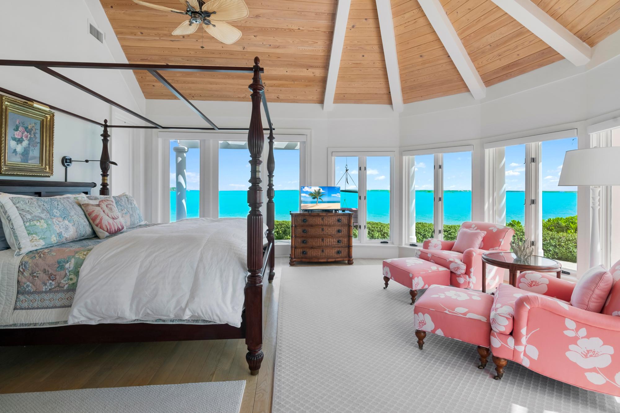 The villa is designed with expansive living areas, offering stunning views of Elizabeth Harbor. Enjoy a private master suite with dual baths, and an additional office/sitting area to meet all your needs. The property also features multiple outdoor patios and a large upper balcony, perfect for taking in the views of the surrounding waters.