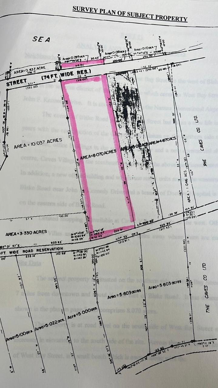 This 8.1-acre land parcel on West Bay Street is a rare beachfront development opportunity that combines prime location with endless potential. Boasting 320 feet of pristine beach frontage, the property offers elevated vistas, allowing for breathtaking panoramic views of the sparkling ocean.